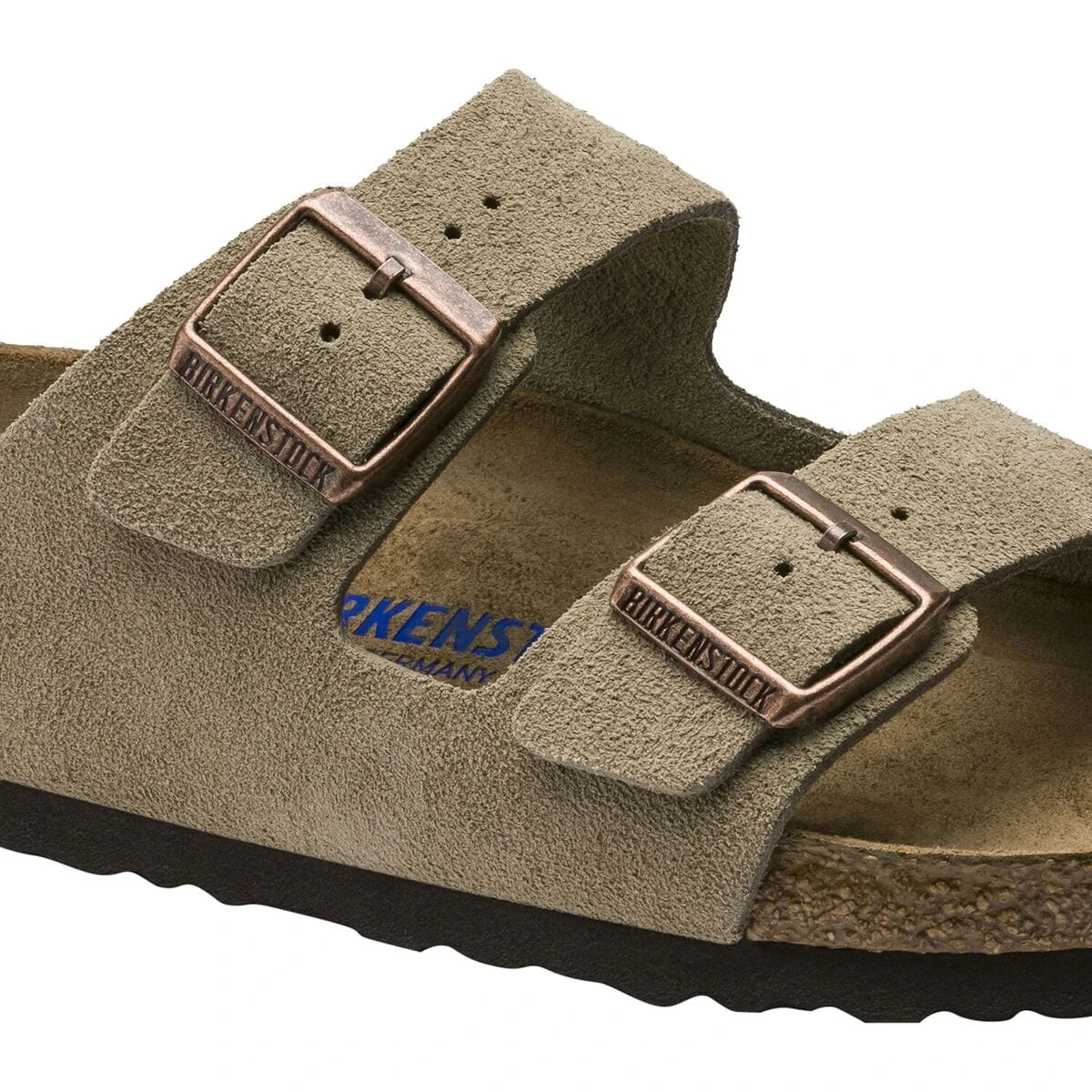 The Birkenstock Women’s Arizona Soft Footbed Suede Narrow Sandal lends luxurious sensibilities to the classic sandal made famous by free-spirited bohemians of the late ’60s. This timeless sandal features a suede upper with a light surface nap for fuzzy softness. This particular version sports a narrower fit that’s ideal for females with skinny feet.