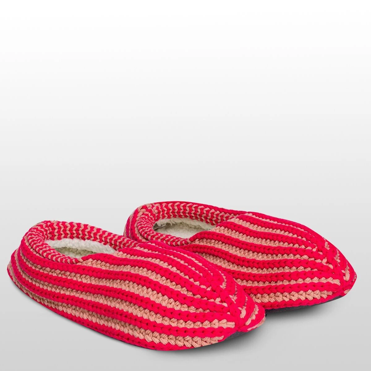Colorful indoor knit slippers with fun and chunky ribbed stripes. Plush, padded softness meets the cozy hug of your favorite socks. Lined with fleece fabric for extra warmth and coziness. Wide toe box, stretchy knit body, and non-slip microfiber sole for maximum comfort. Washable.