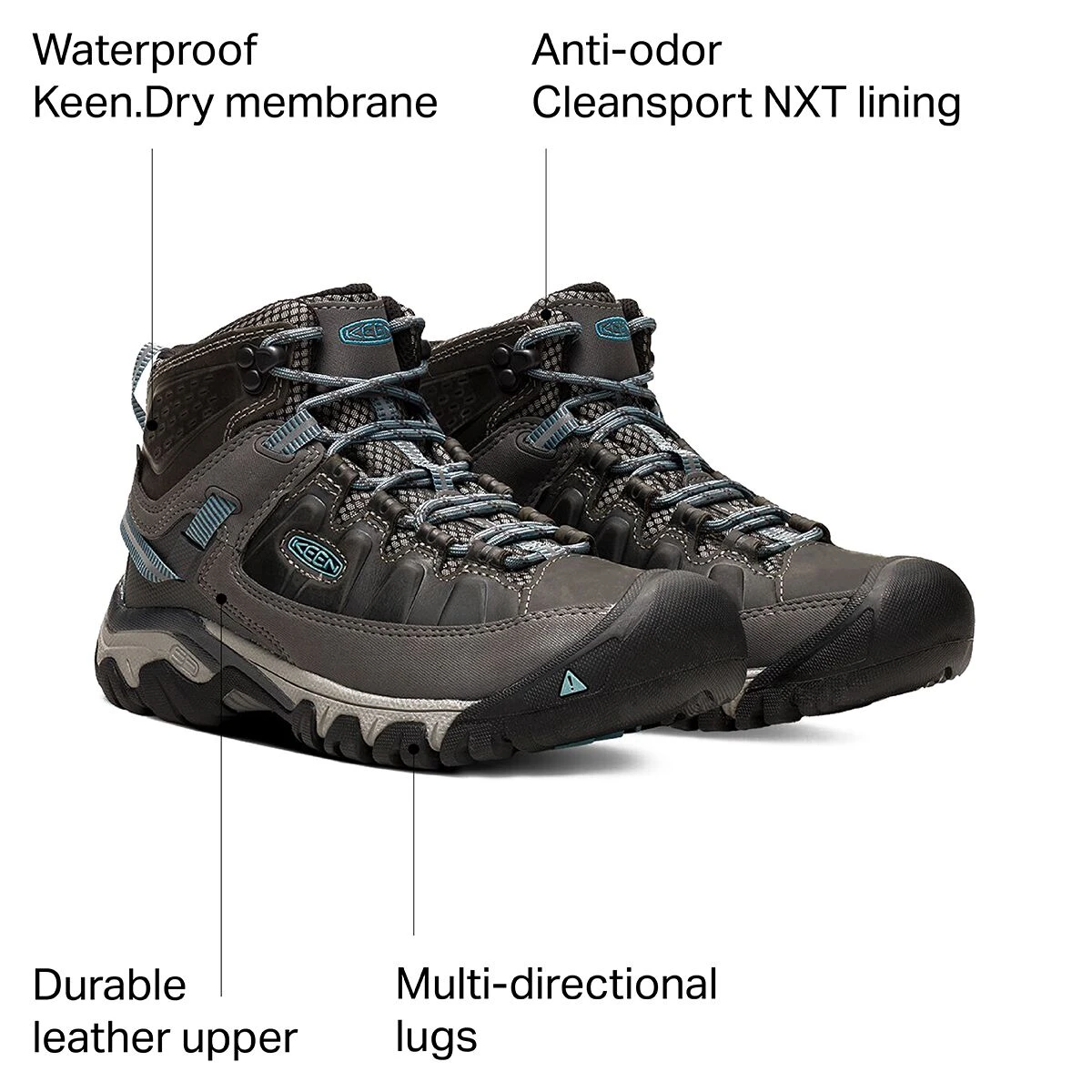 We like to wander wet, muddy trails with the surefooted traction and reliable waterproof protection of Keen’s Targhee III Mid Waterproof Hiking Boots. Keen.Dry membranes keep chilly stream water from seeping into our shoes, while a Cleansport NXT mesh lining fights odor to keep these boots fresh after long miles.