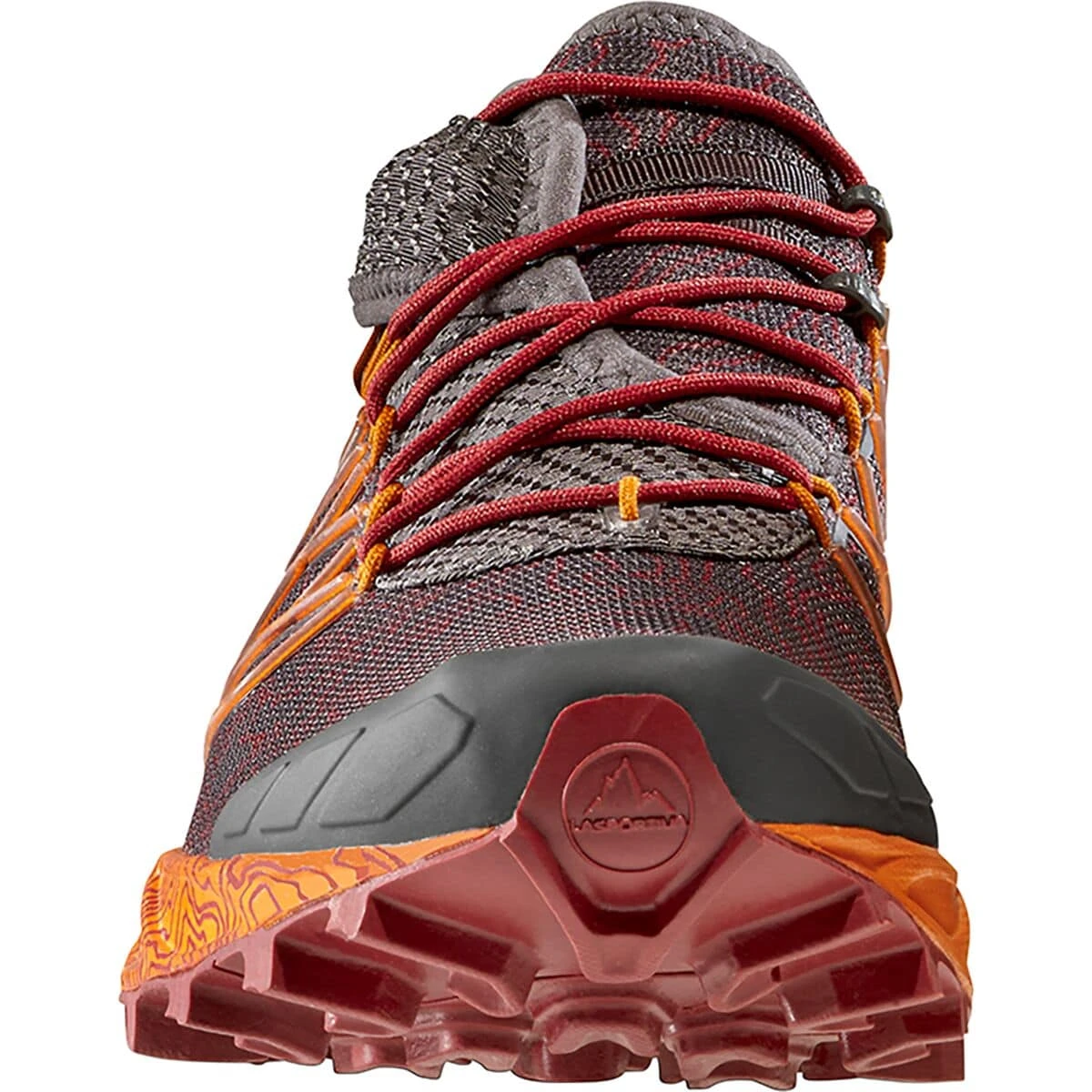 From mud-slide steeps to snow-covered ridgelines, the La Sportiva Mutant Trail Running Shoe keeps our stride strong and confident. Built with a midfoot-securing lacing system and a strike-stabilizing midsole insert, this pair encourages us to keep pace over technical terrain, while the high-rise, 4-way stretch collar acts as a built-in gaiter to stop debris from wriggling in. With deep, multi-directional lugs and sticky rubber shoring up our footing on slick trails, we maintain power through our transitions and control throughout the ups and downs of our route.