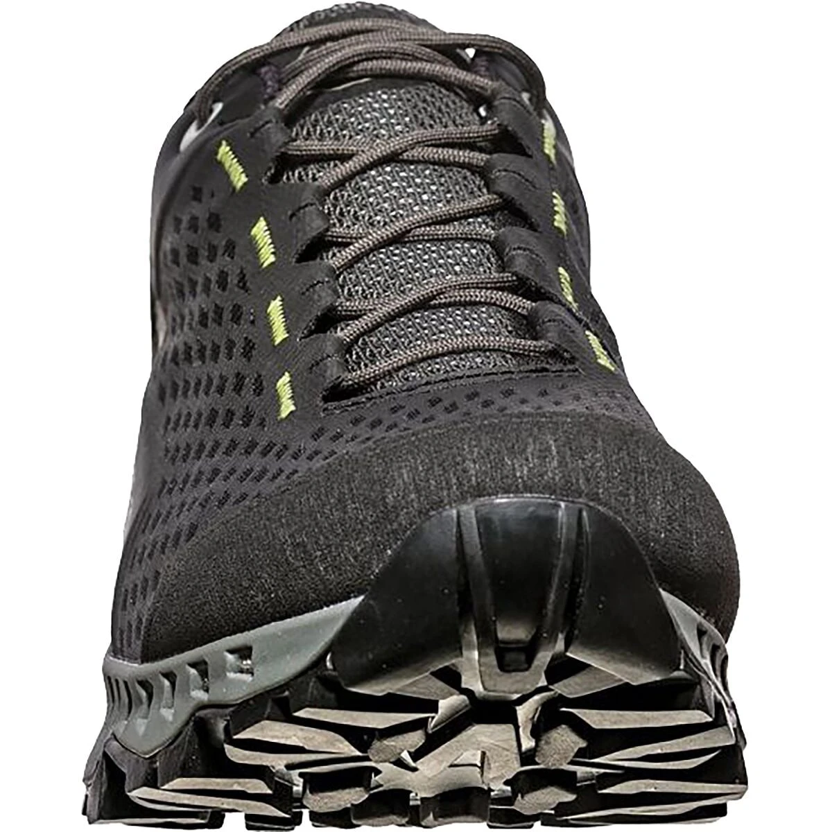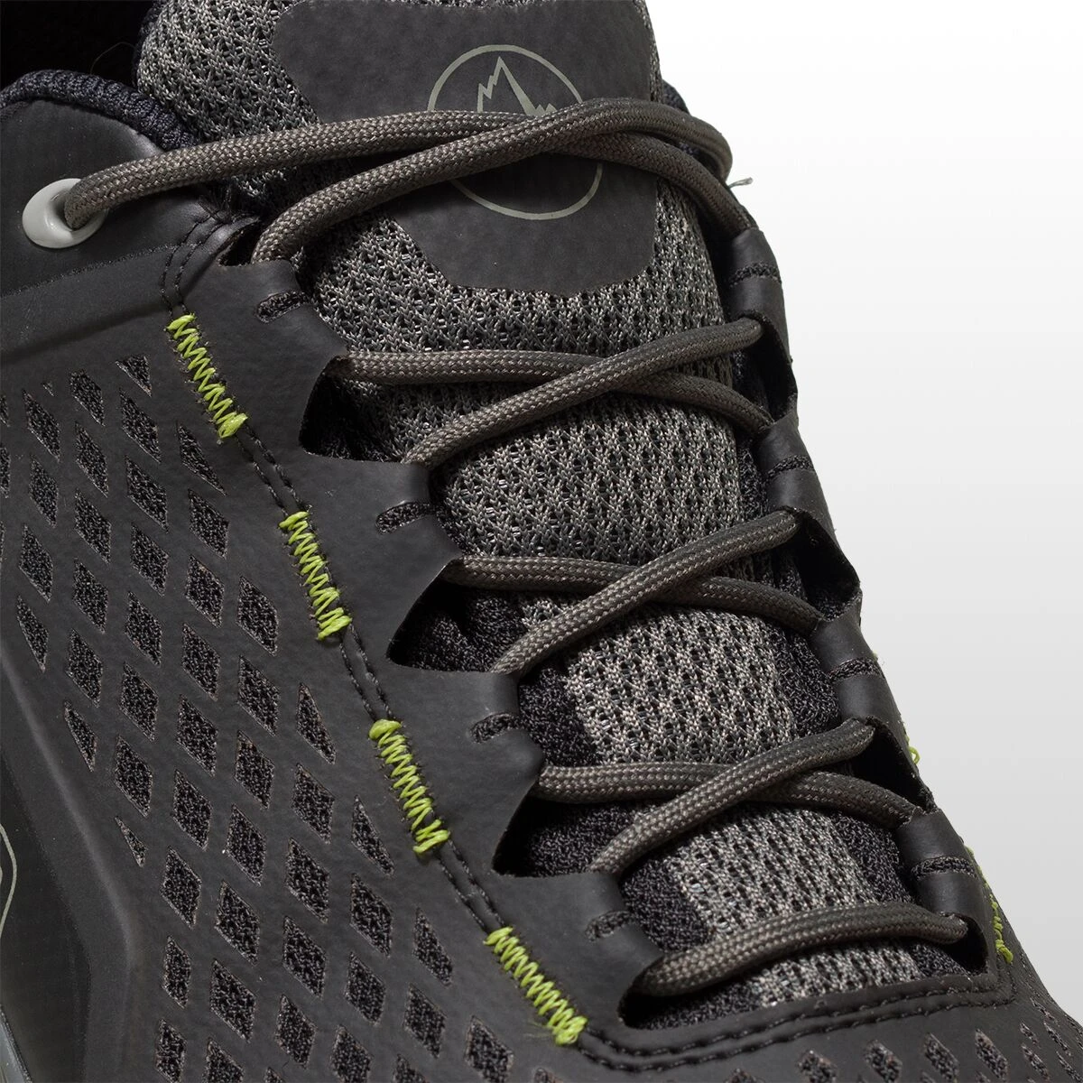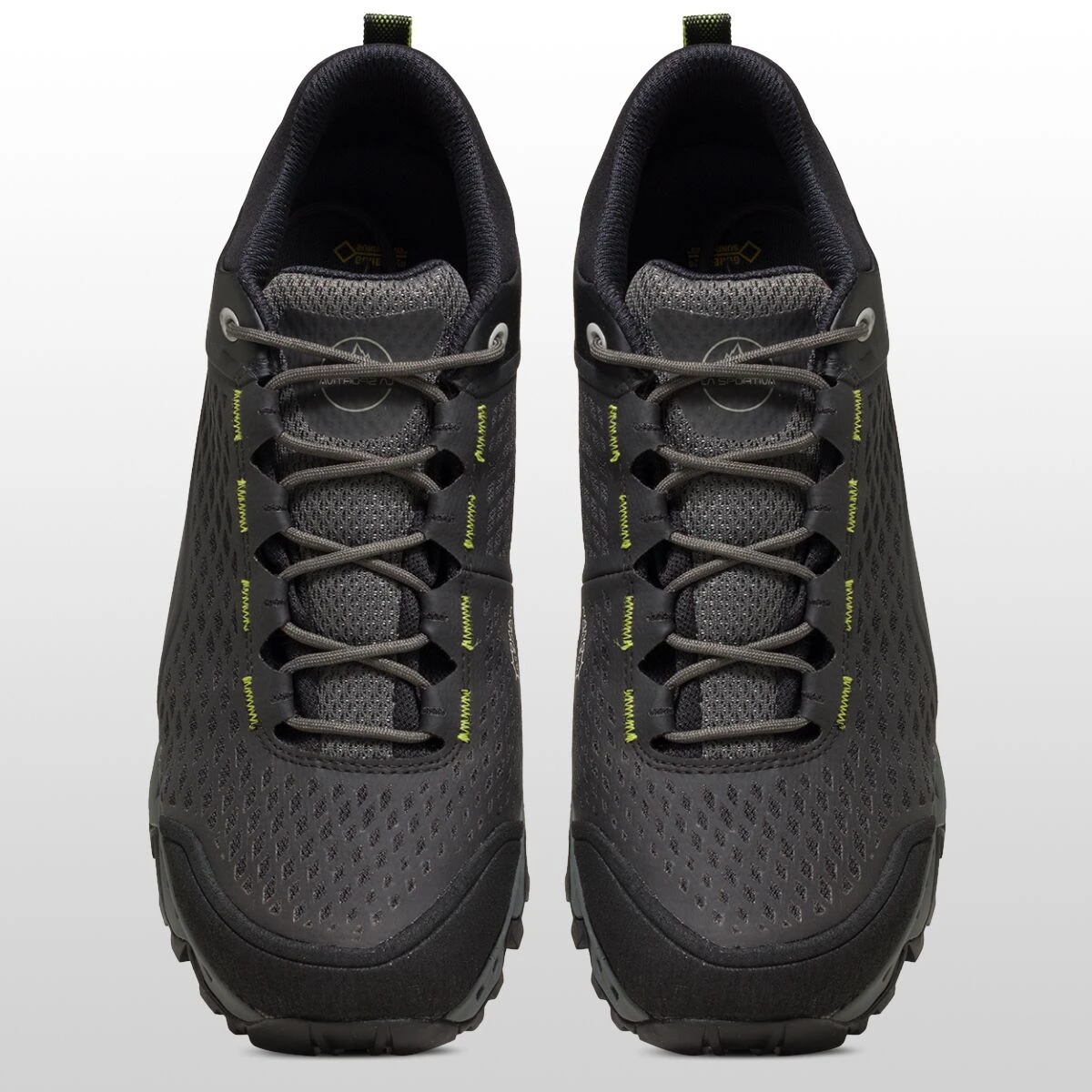 The La Sportiva Spire GTX Hiking Shoe offers the performance, durability, and protection we need for rugged peak-bagging day hikes and fast-moving backpacking trips. This versatile hiking shoe features Gore-Tex Surround technology, which not only offers waterproof protection in the lining and upper, but delivers effective draining for multi-dimensional dryness on the trail. One of the only pitfalls of a waterproof shoe is that although waterproof membranes keep water out, they also keep water in when creek crossings and other mishaps leave them soaking wet from the inside. The Spire GTX solves this problem by incorporating aeration channels within the footbed and midsole, as well as drainage ports towards the bottom of the shoe, giving a fully waterproof construction that continues to keep our feet dry when the unexpected happens.
