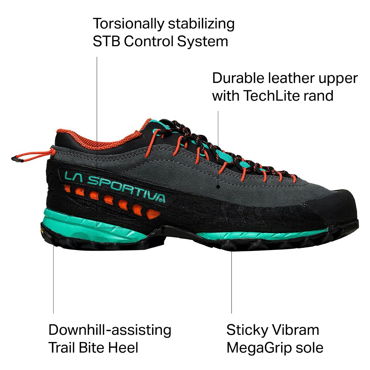 Sometimes the climb itself is only half of the adventure. Built with leather uppers, a PU rand, and shock-absorbing midole, the TX4 Approach Shoe is the most structured and long-lasting boot in La Sportiva’s Traverse X series. The Mega-Grip Vibram soles hold fast on slick boulders or steep scree fields, and they’re designed with specific climbing zones to assist on both uphill and downhill travel.