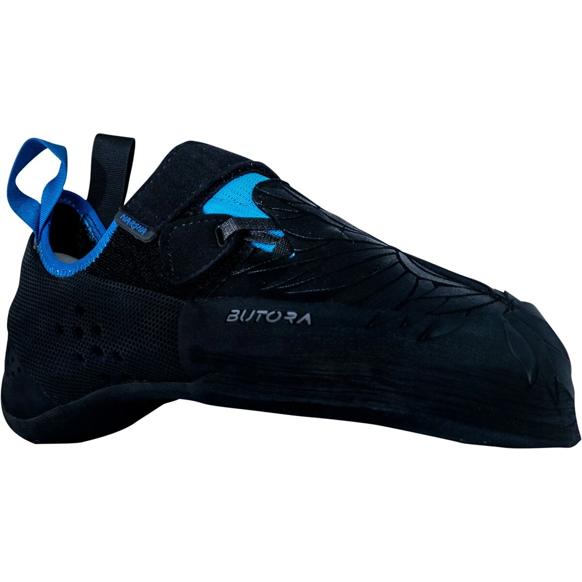 It seems like everyone at climbing gyms and boulder fields are talking about Butora’s Narsha Tight Fit Climbing Shoe, and not just because of it beautifully designed toe cover. That work of art is designed to give your toe the traction it needs to stick nasty toe hooks on greasy plastic and greasier granite. Butora made the toe—as well as the sole—out of Neo rubber for long-lasting edging performance. The Nasha certainly sports a highly aggressive downturn, but Butora instilled this unique, internal NSF strap that adds room to the upper so you can have a little more comfort when you’re sport climbing long routes.