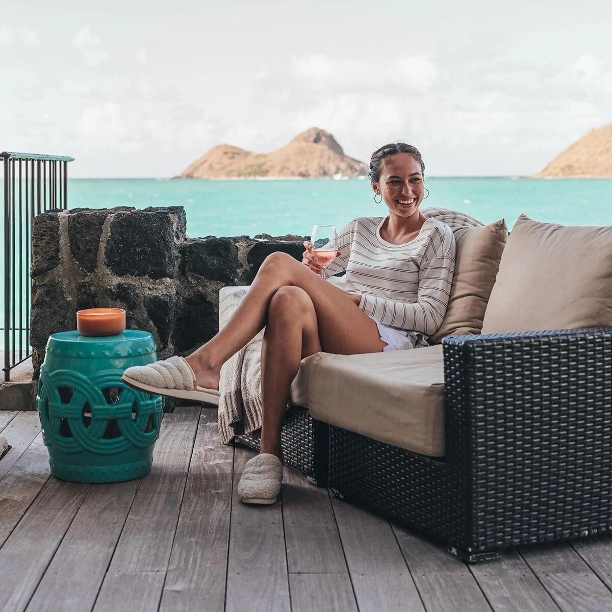 Great weekends start by sliding into Olukai’s Pupu Mua Slipper. Wrapped in genuine fuzzy shearling, these plush house slippers ensure that every step we take is one filled with dream-like comfort.,/p>