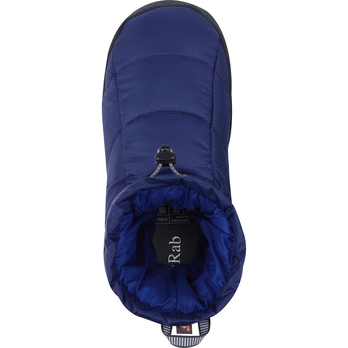 The Rab Cirrus Hut Boot gives our tired feet sweet relief after a day of skiing, mountaineering, climbing, or when we are sitting by the fire on a cold winter night. The boot cocoons our feet from toes to ankles in lightweight and packable 100% recycled synthetic insulation that looks and feels like down, but resists water and retains its shape.