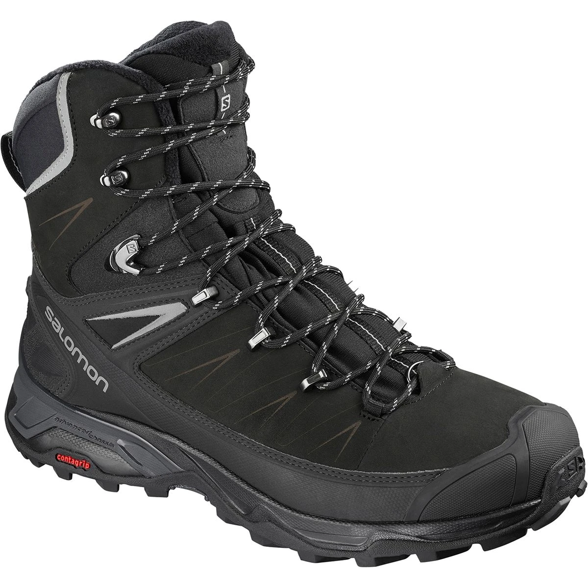 The Men’s X Ultra Winter CS WP Boot battles winter weather with Salomon’s toughest technologies. The ClimaSalomon membrane lines the Nubuck leather upper for reliable waterproof protection on snowy trails, and the Thinsulate insulation maintains warmth in snowy temperatures. Underfoot, the X Ultra features Salomon’s Advanced Chassis to maximize motion control and energy management for an efficient, stable, responsive performance. The Winter Contagrip sole is fine-tuned for ice, snow, and slippery terrain.