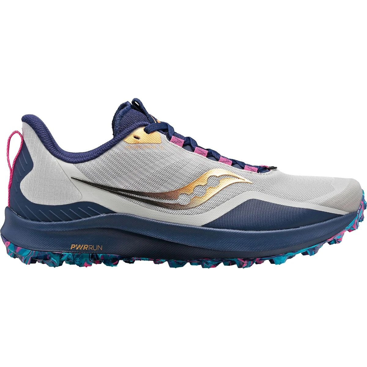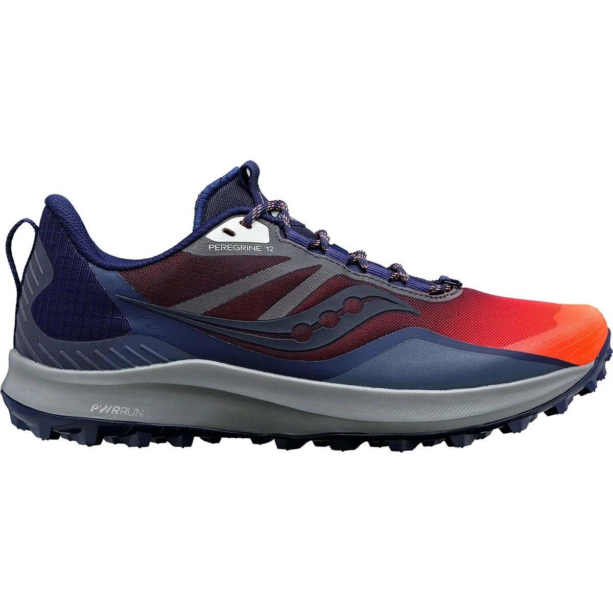 Swift and powerful, the Peregrine 12 knows only speed. The new streamlined upper lets our feet move freely over technical terrain, while the tenacious sole bites hard, reinforcing our transitions. No matter how rough the trail gets, the newly integrated rock plate armors our sole, and the springy foam softens our strikes.