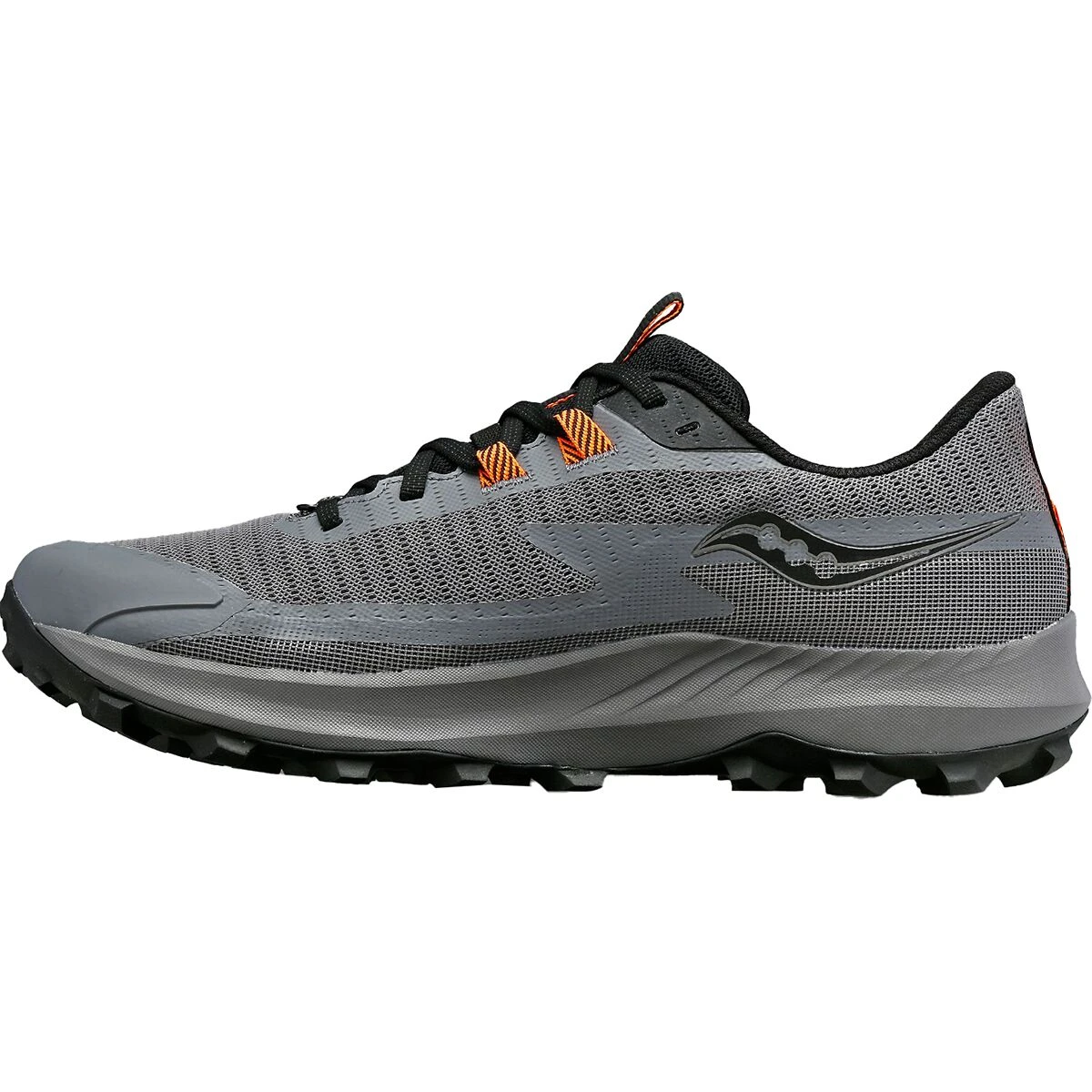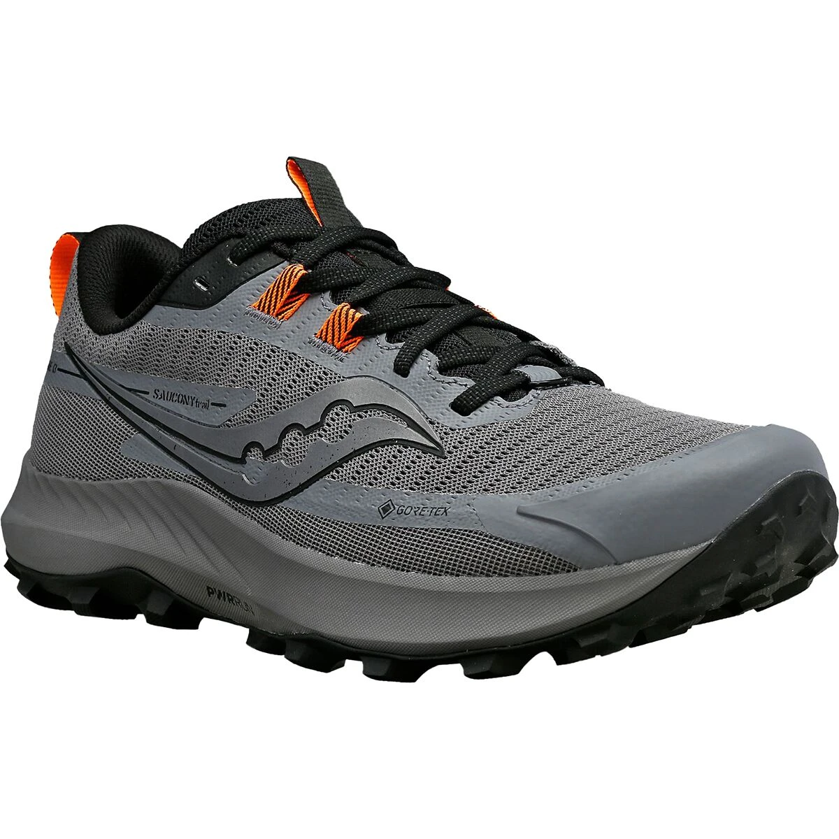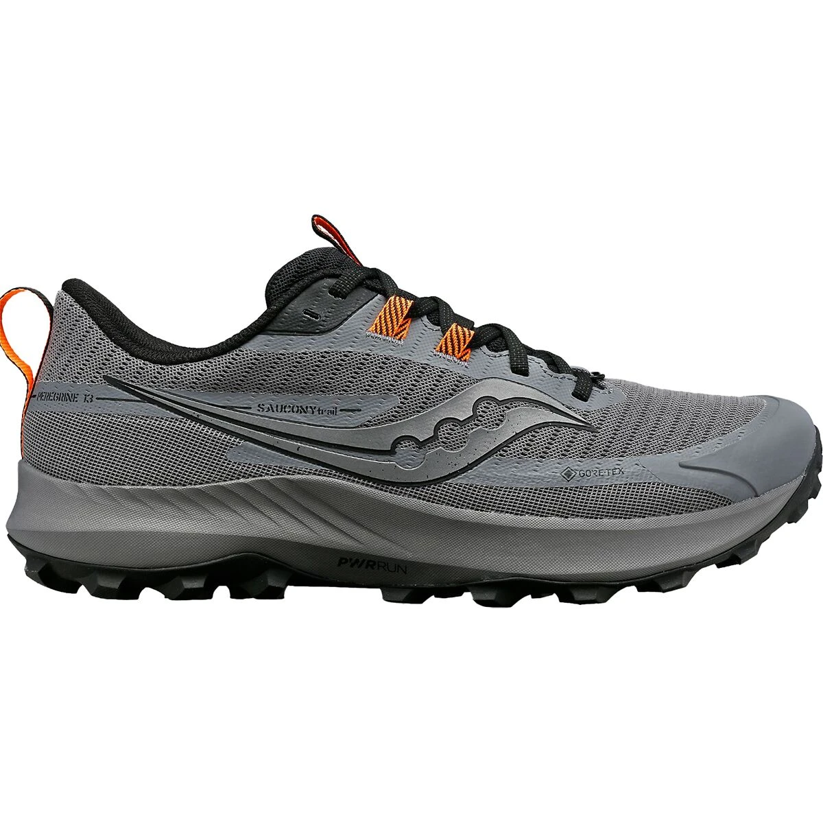 To go the distance, no matter the weather, we lace into the Saucony Peregrine 13 GTX Trail Running Shoe. Equipped with GORE-TEX INVISIBLE FIT technology, this pair keeps our feet dry under rainy skies and through water crossings without the stiff, crinkly feeling we think of with weatherproofing. Instead, we get that breezy, flexible feel of mesh, while the light and lively midsole springs us into quick transitions, and the tacky rubber lugs bite into dry and wet terrain alike.