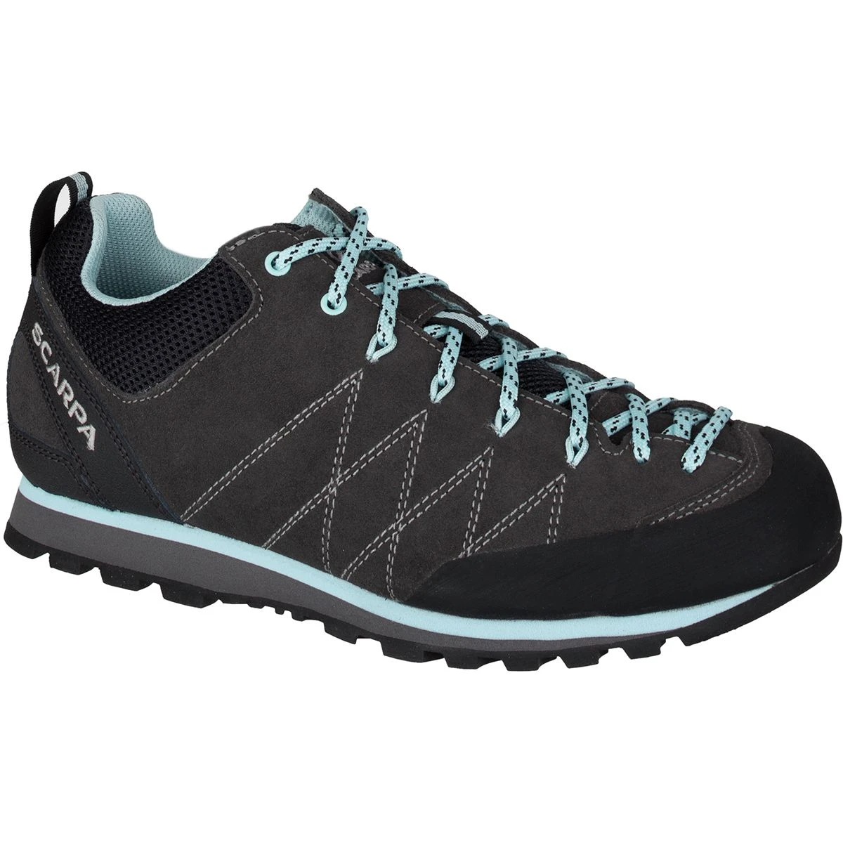 The Women’s Scarpa Crux Shoe shows that you need not worry about scrambles or loose scree as you approach the crag. Suede and recycled polyester airmesh encourages natural ventilation, with Kevlar webbing integrated for shape retention and durability. The Vibram Vertical Approach sole keeps your footing confident through sketchy scrambles, with a dual-density EVA midsole adding comfort to tough approaches and low-level climbs. A member of Scarpa’s Planet Friendly initiative to support more sustainable manufacturing practices, the Crux helps you get to the crag with confidence and a clearer conscience.