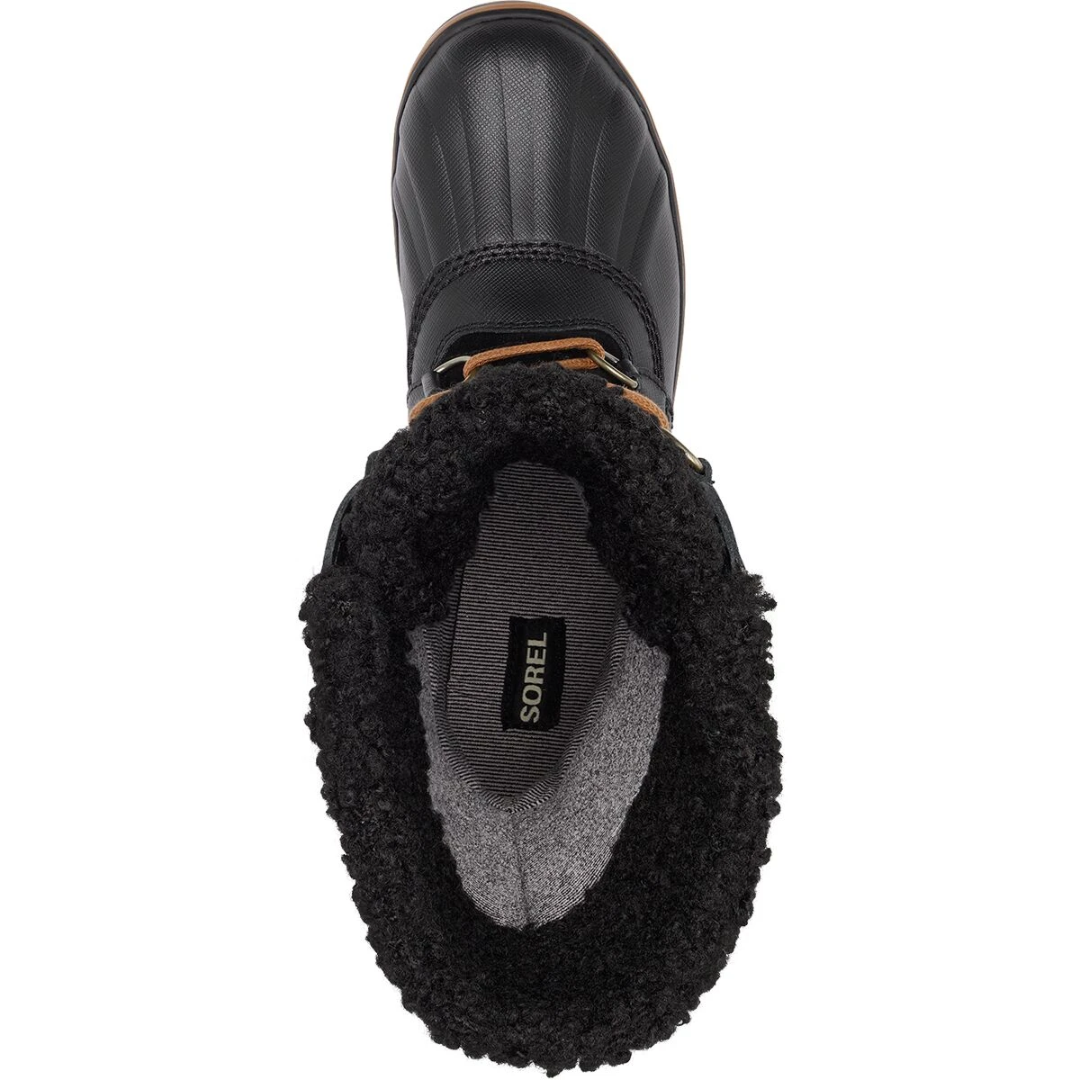 - Waxed canvas upper features leather overlays and faux fur