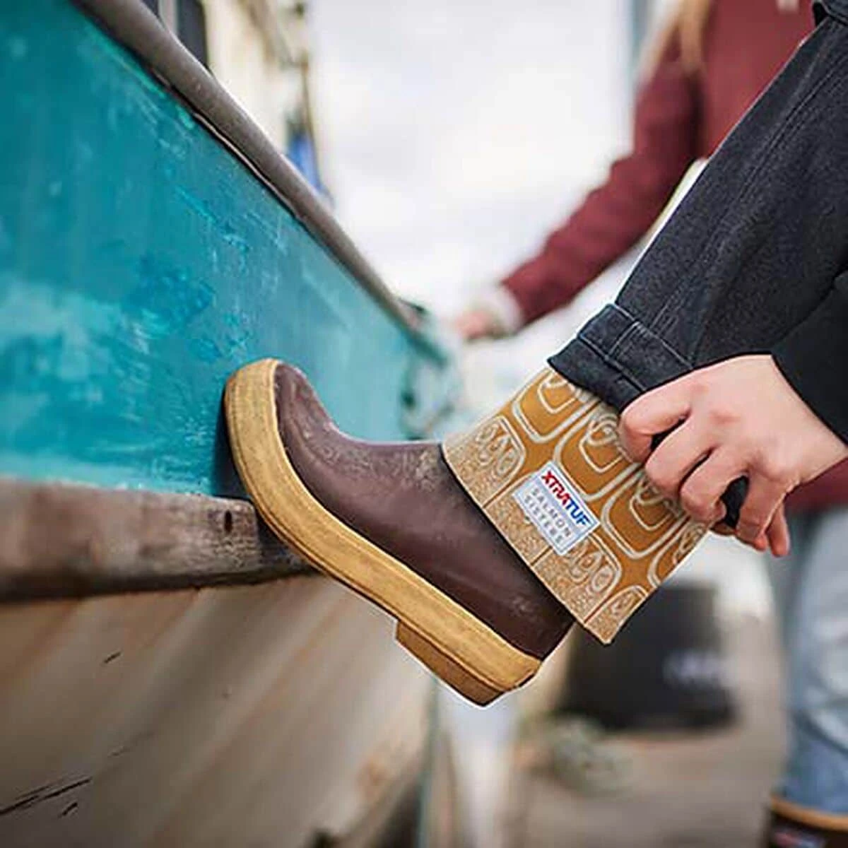 XTRATUF’s Legacy Salmon Sisters 15in Boot features designs by two anglers born in the wilderness of Alaska. The Tinned Fish print on the inside of the boot is an homage to Alaska’s seafood industry, and the rugged construction is essential for workers and enthusiasts on deck.